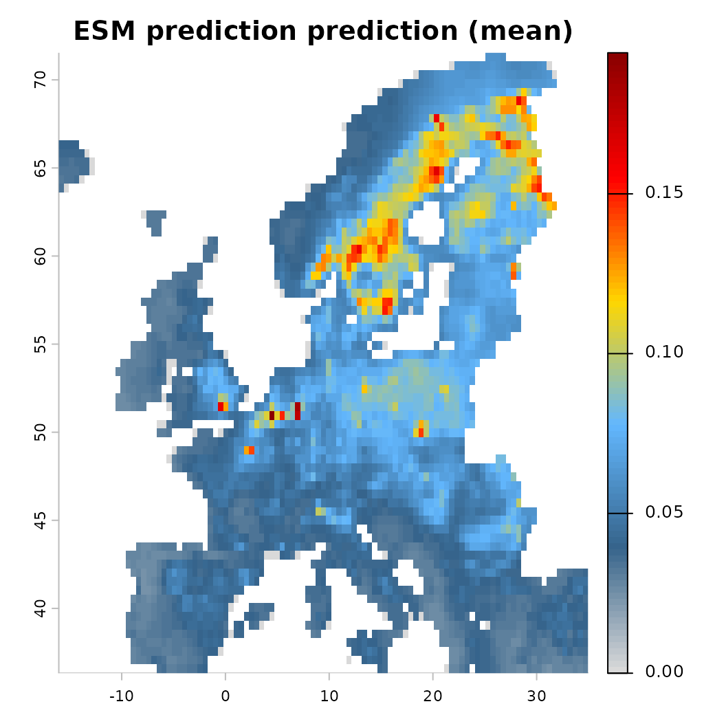 # The resulting object contains only the final prediction, e.g. that of the presence-absence model